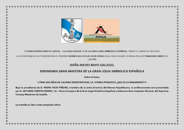 Para além da Grã-Mestra estará presente uma das maiores referências maçónicas da Península Ibérica. Trata-se do Ex-Soberano Grande Comendador do Supremo Conselho Maçónico de Espanha, Muito Ilustre Irmão António Campos Romay, 33.º. A todos desejamos as maiores felicidades para esta iniciativa.